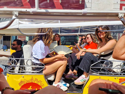 Lancement d'un grand rallye tuk-tuk à travers les rues escarpées de l'Alfama, quartier historique de la ville de Lisbonne